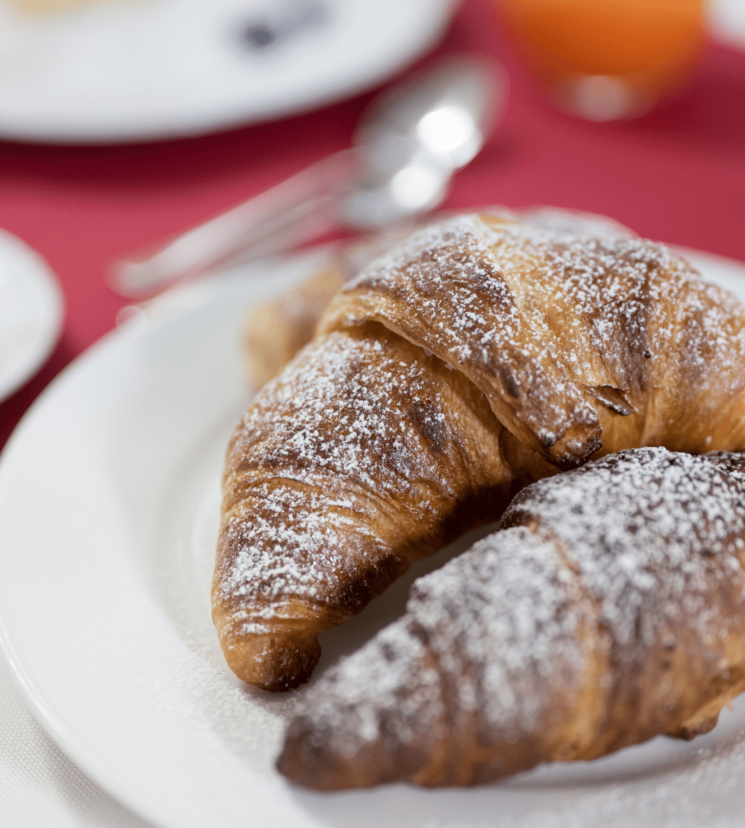 La colazione è il nostro Dolce Risveglio, servita nella sala panoramica, affacciata sulle Dolomiti e il gruppo dei Monzoni.